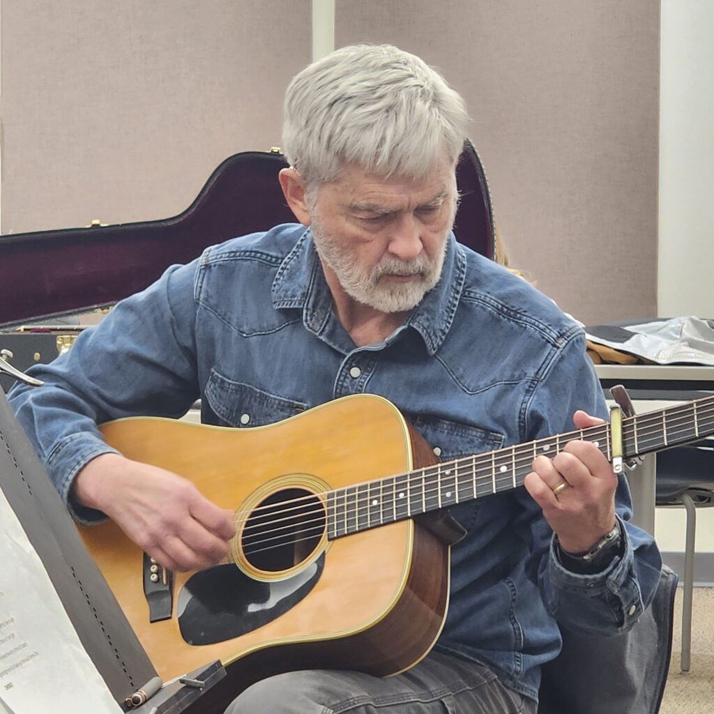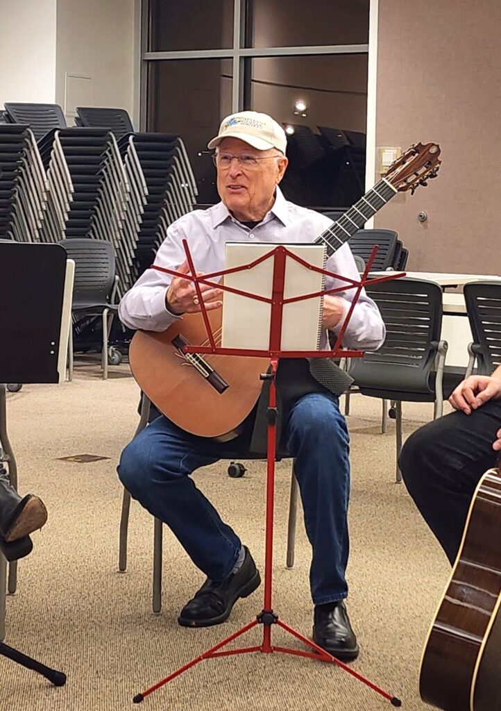 Tip of the cap to Dave Stephenson, who braved playing in public for the first time. He learned, as the rest of us know all too well, that playing on your sofa with a dog for an audience is much easier than a public performance for other guitar players… He hung in there, tho’. Cudo’s to you sir.