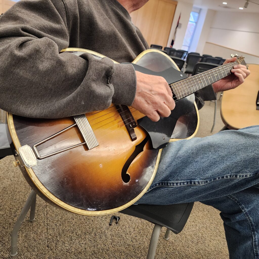 Gretsch archtop from the ’30’s. Operator is a much newer model.