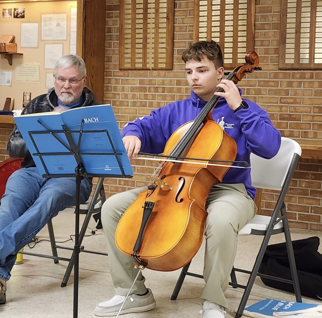 Welcome to Roman Wheeler, his roadies and fan club included. This is the first time we’ve had a cellist join us, and a pretty rootin’ tootin’ good one at that. He did his very best to class up the joint playing some J.S. Bach, while Nancy and I undid that class as quickly as possible.