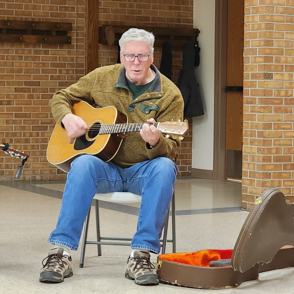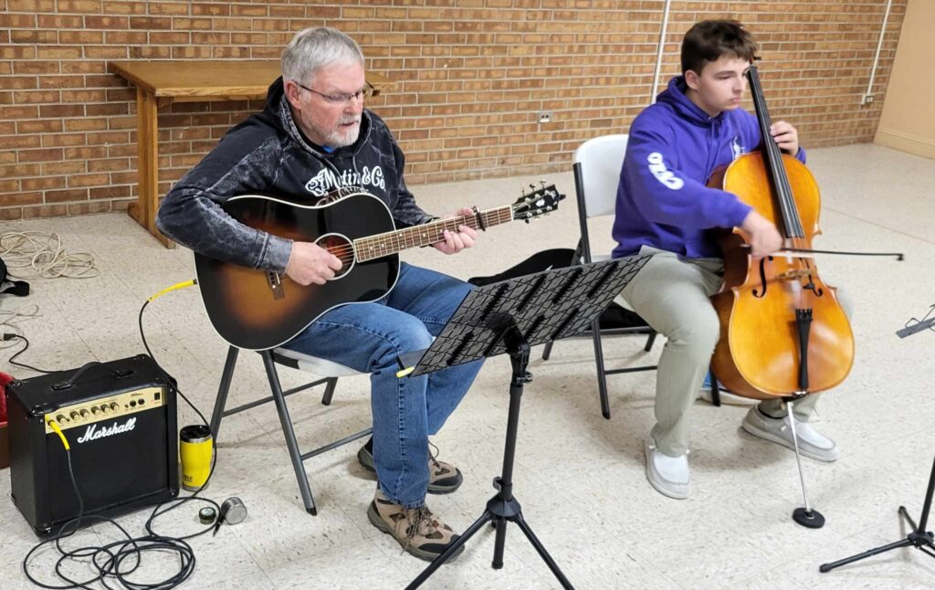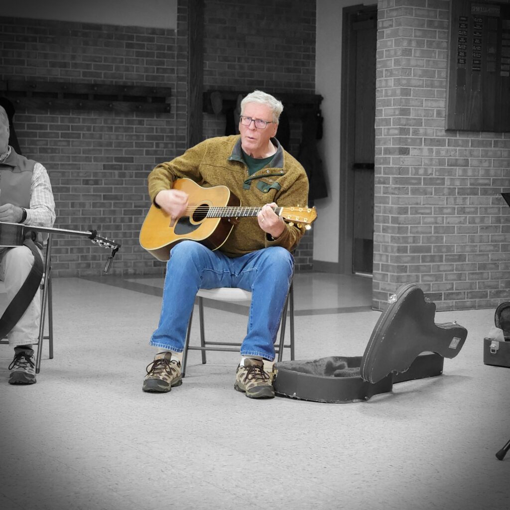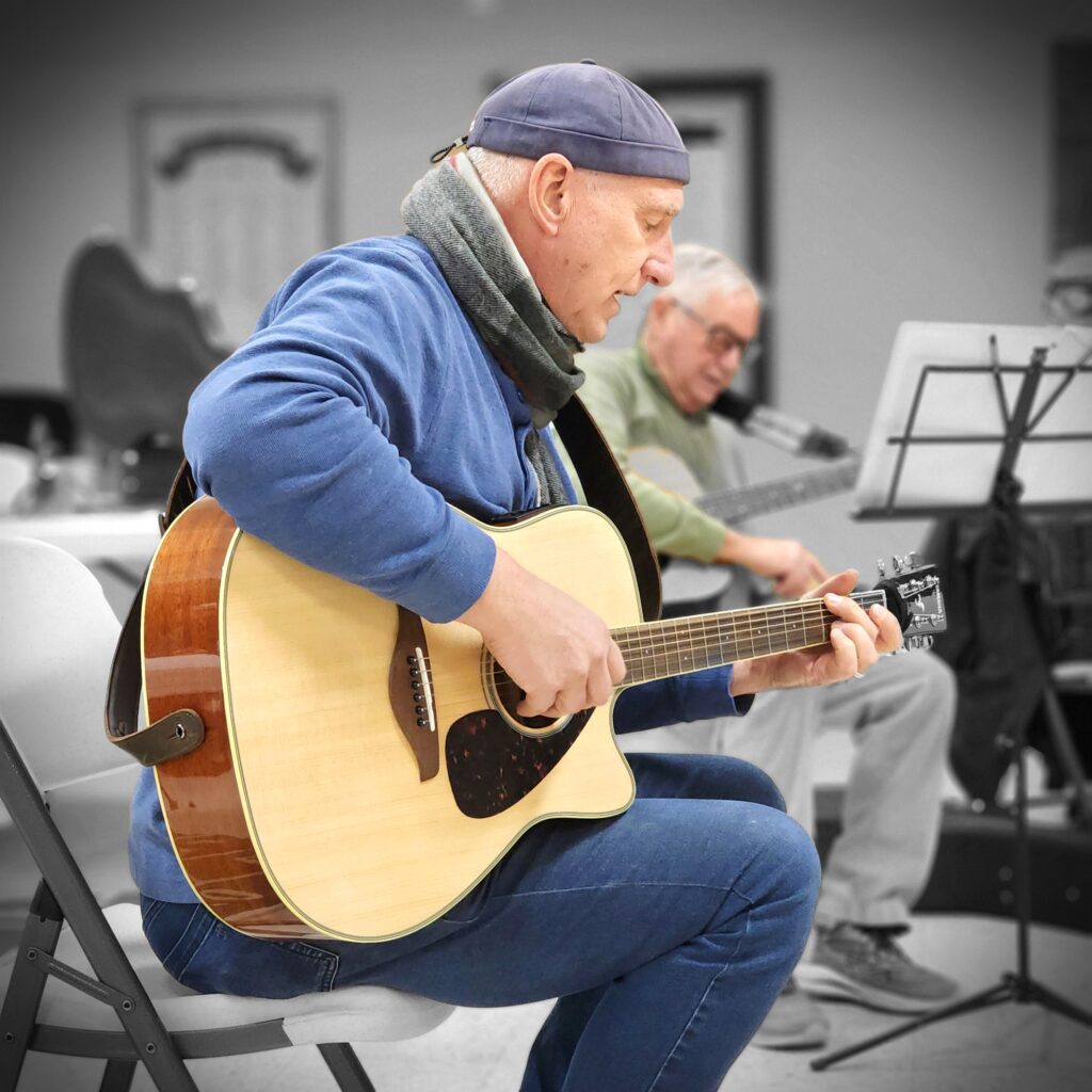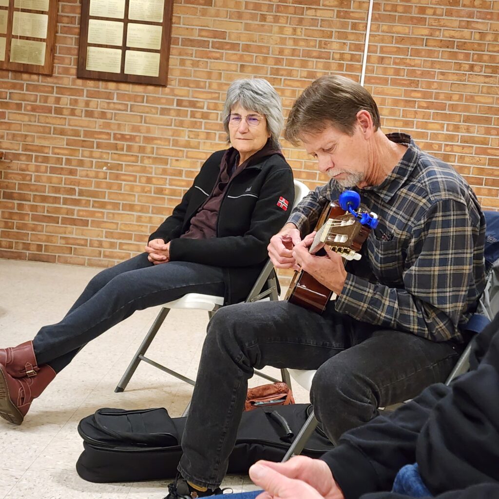 Our hats off to Roman, who got off to a rocky start by agreeing to play with his grandad, Matt. He soldiered through Matt having the capo on the wrong fret to start. Once they got that equipment malfunction squared away, we all heaved a sigh of relief. Roman was unfazed through it all; very impressive performance, young squire!!!